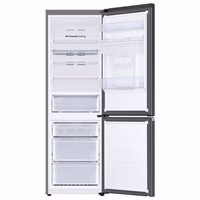 Samsung RB34C652EB1/EF е просторен хладилник с долен фризер, идеален за семейства, с общ обем 341 литра и интелигентна система No Frost, която елиминира образуването на лед. Технологията All-Around Cooling гарантира равномерна температура във всички отделения, докато енергийния клас E и тихия режим от 35 dB го правят икономичен и удобен за дневното ползване.
